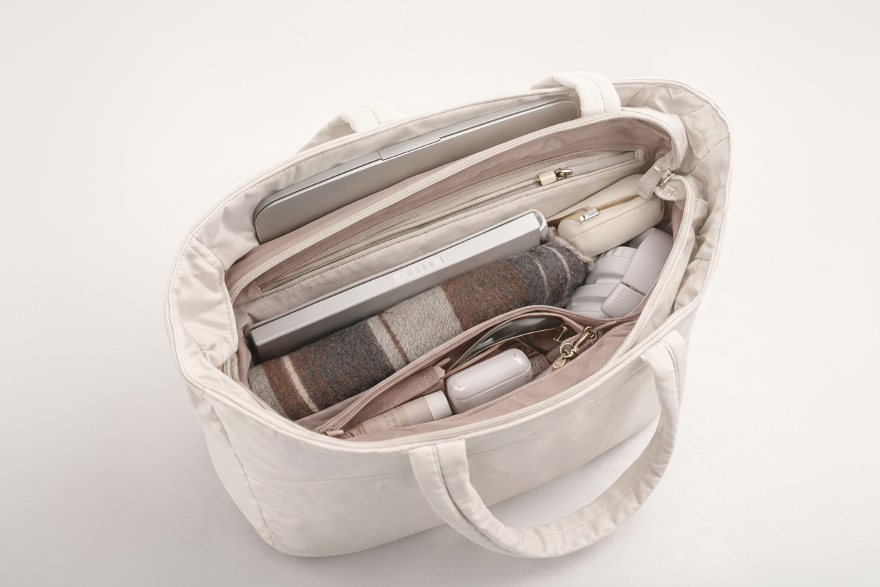 The lightweight zip tote that keeps your laptop, bottle and daily essentials organized — without the bulky feel of a work bag.